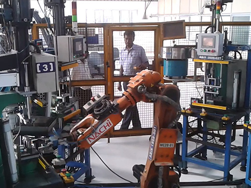 Tespa robotics can help you develop a system to automatically unload your presses or take stacks of product from your presses and package the product, or move it to a downstream operation. We have developed solutions for part infeed and transfer of press lines and stand-alone press systems. We offer custom tailored end effector and tooling. We also provide accurate simulation to optimize equipment layout and maximize throughput. Operator safety is significantly improved by eliminating manual press loading, along with complete safety solutions.